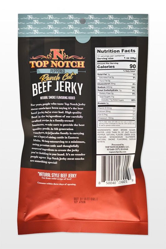 - All Top Notch beef jerky is made with 100% locally-raised beef to provide you with the best beef jerky quality possible.